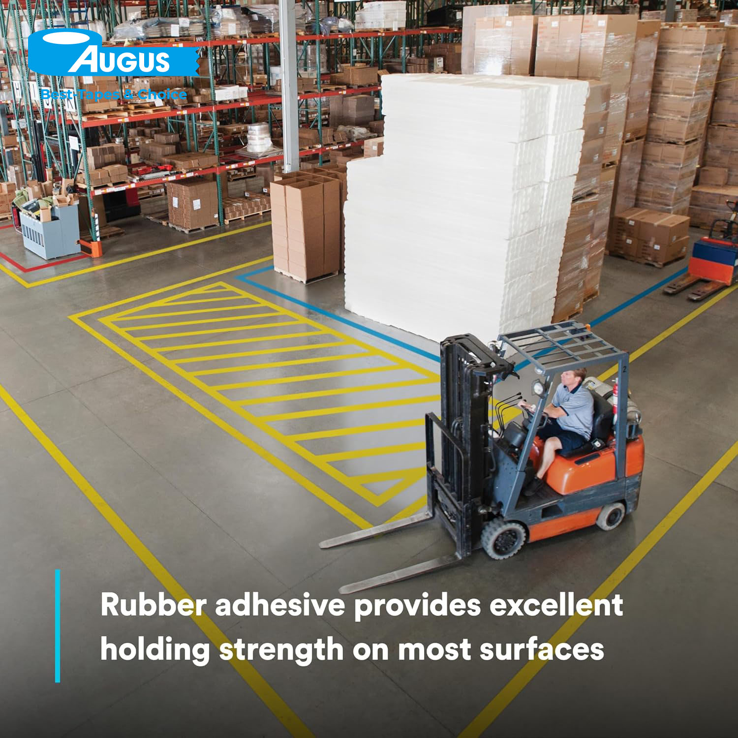 Augus vinyl tape is a replacement for 3M Vinyl Tape 471, is a conformable colored (9 colors plus transparent) tape made from vinyl backing with rubber adhesive. It is ideal for many lane and safety markings, color coding, abrasion protection, masking, sealing, splicing and other general purpose applications.