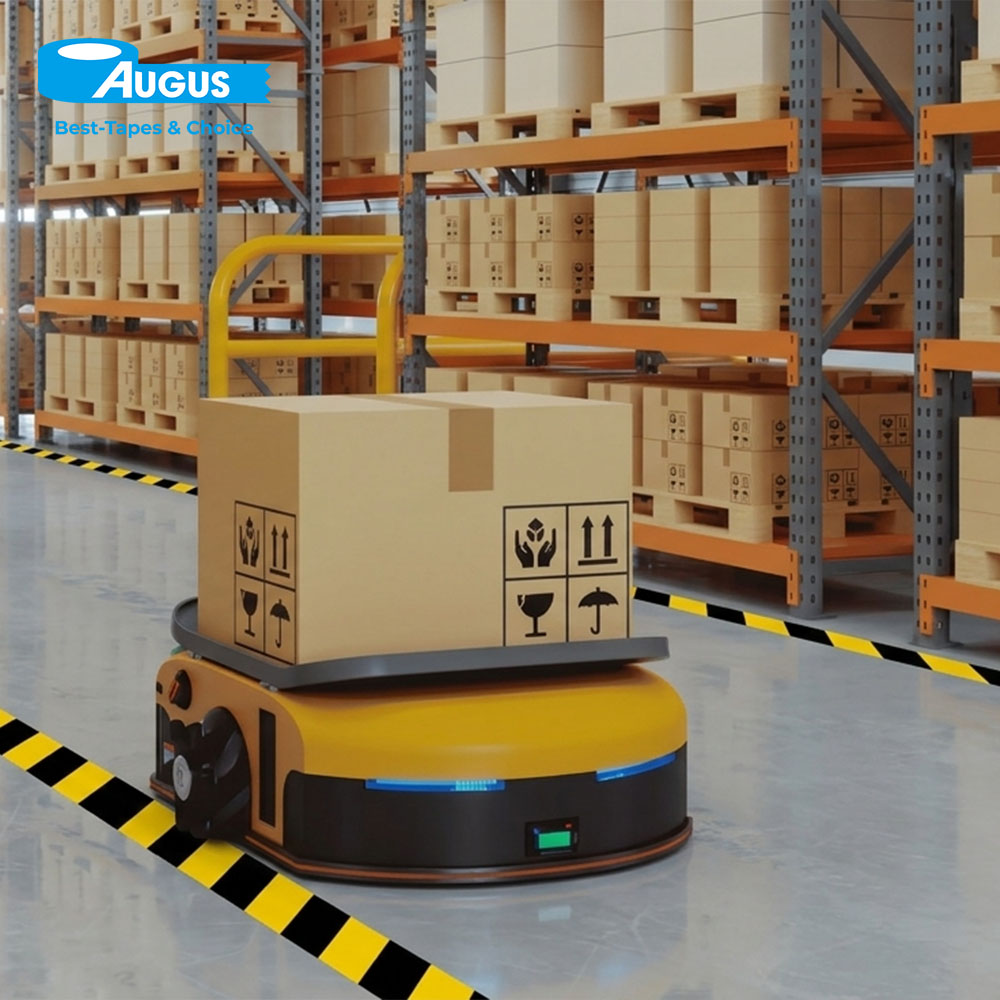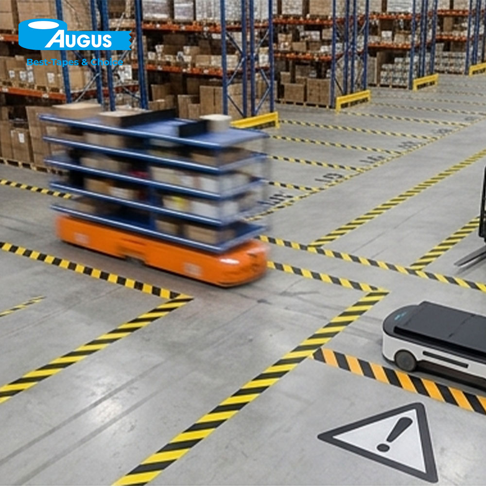 PVC Floor Marking Tape 0.23 mm coated scratch-resistant, easy-to-clean warning area marking tape for unmanned warehouse marking and robot path marking. Heavy‑duty single‑sided pressure‑sensitive tape made from flexible PVC film with strong rubber‑based adhesive. Designed for Robot marking, permanent/semi‑permanent floor marking in warehouses, factories, workshops, and commercial spaces. Provides high visibility, abrasion resistance, and reliable adhesion to concrete, epoxy, tile, and vinyl floors.